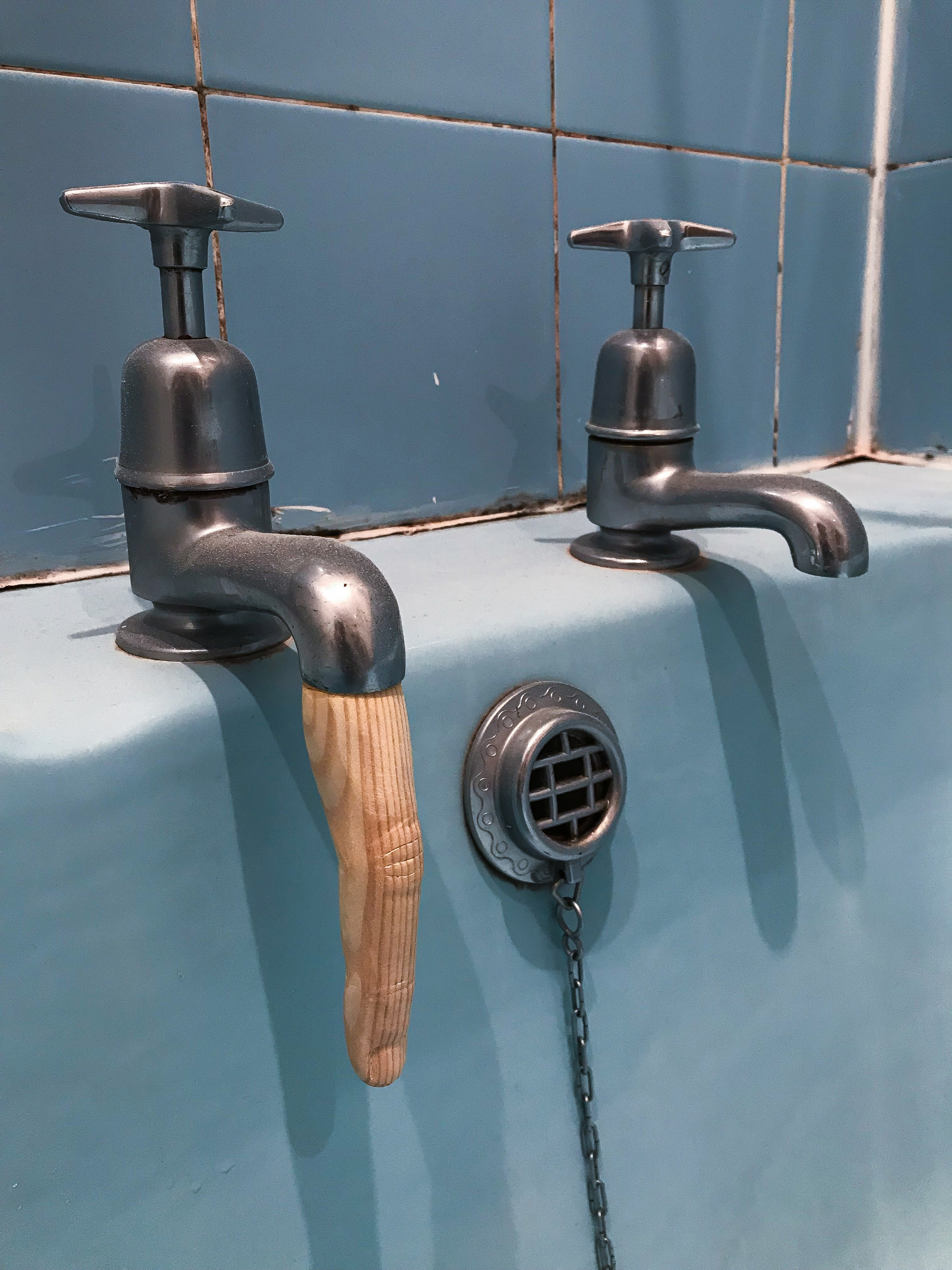 Recycled pine, bath tub, [measurements of finger and tap only] 10 x 17 x 25 cm, 2021.